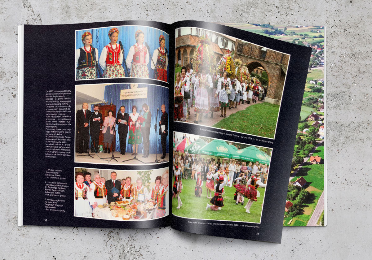 Gmina Kocmyrzów-Luborzyca Witacze wjazdowe do Gminy Kocmyrzów – Luborzyca. Tablice unijne, foldery, ulotki, albumy fotograficzne. Fotografia lotnicza, teczki okolicznościowe.