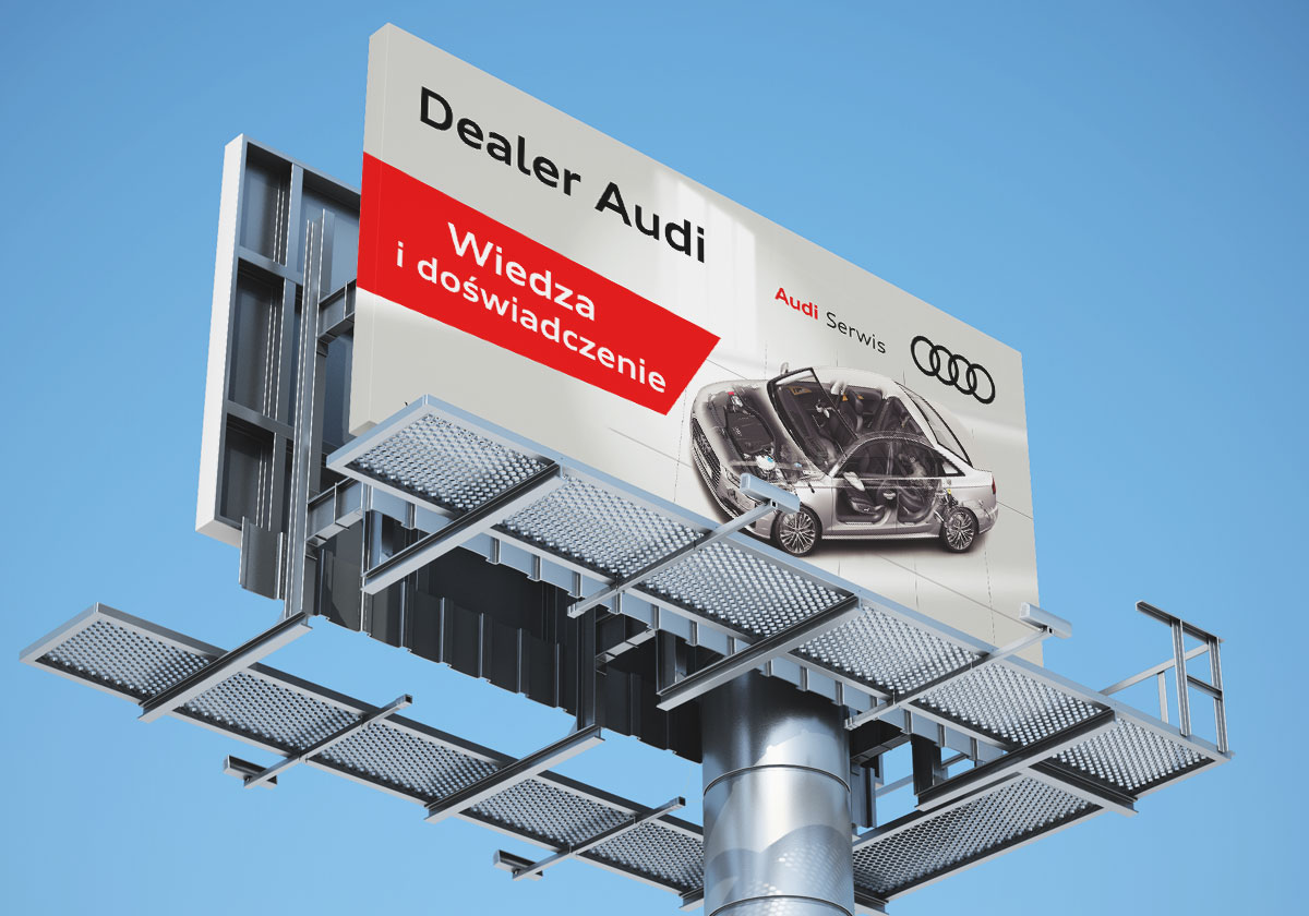 Dealer VW i Audi Obsługa graficzna, montaże techniczne Dealer Audi i Volkswagena. Prace według wytycznych ID, Audi i Volkswagen. Druk folderów, wizytówki, karty plastikowe, rollupy, ulotki promocyjne, oklejanie pojazdów, billboardy grafika oraz wyklejanie.